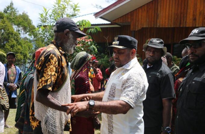 PojokIndo.com – Penjabat (Pj) Bupati Tolikara Marthen Kogoya, SH.,M.AP melakukan kunjungan kerja ke Distrik Longgoboma, Jumat 15 September 2023. Selain untuk memantau perkembangan proses pembangunan, dalam kunjungan tersebut Pj Bupati juga berdialog dengan masyarakat sekaligus menghadiri acara syukuran Kepala Distrik Longgoboma yang baru, Gutier Walengga.