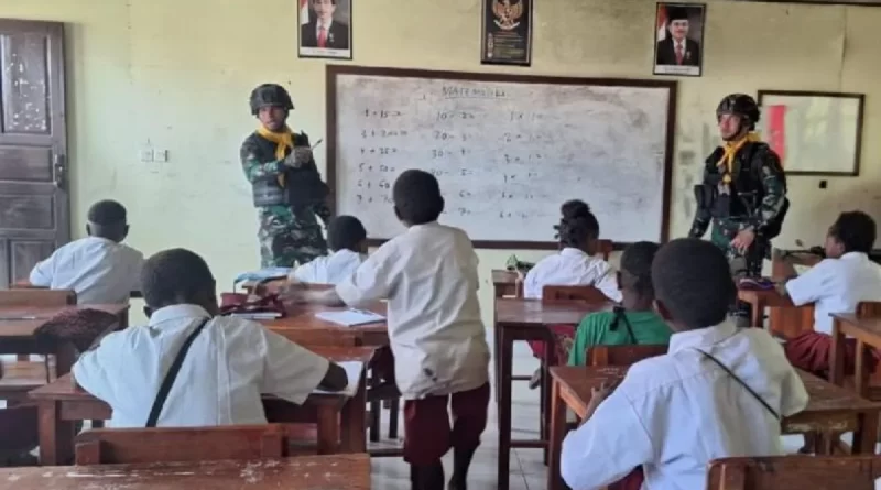 JAYAPURA, POJOKINDO.com – Komandan Yonif 300/Bjw Letkol Inf Afri Swandi Ritonga mengatakan prajuritnya yang bertugas di Distrik Sinak, Kabupaten Puncak, Papua Tengah, dikerahkan untuk membantu mengajar siswa di SD Inpres Sinak.Memang benar sejumlah prajurit Yonif 300/Bjw yang dibekali dan dilatih cara mengajar sudah mulai membantu guru dengan memberikan pelajaran kepada murid-murid.