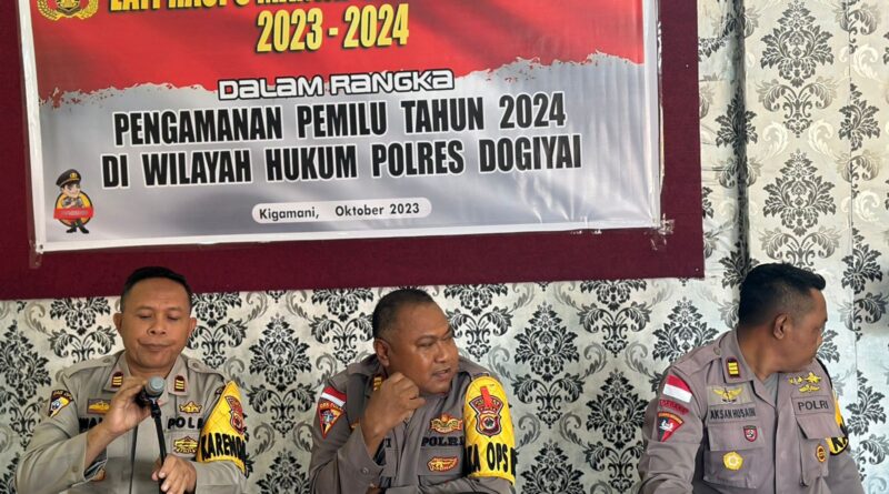DOGIYAI, POJOKINDO.com – Polres Dogiyai menggelar Latihan Pra Operasi (Lat Pra Ops) Mantap Brata 2024 yang berlangsung selama 3 (tiga) hari pada tanggal 23-25 Oktober 2023 di Aula Bhayangkari Polres Dogiyai.