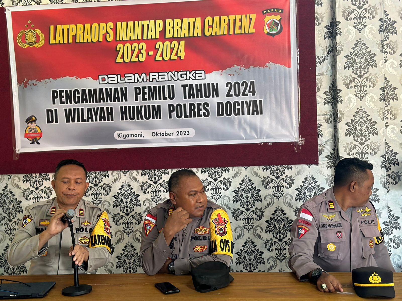 “Bahwa Operasi Mantap Brata 2024 adalah bagian penting dari persiapan Polri untuk Pemilu 2024. Dengan memastikan bahwa personelnya terlatih dan dilengkapi dengan pengetahuan yang baik, Polri dapat membantu memastikan bahwa pemilu dilaksanakan dengan aman dan lancar,” ucap Wakapolres Dogiyai, AKP Michael L. Ayomi, S.Sos.