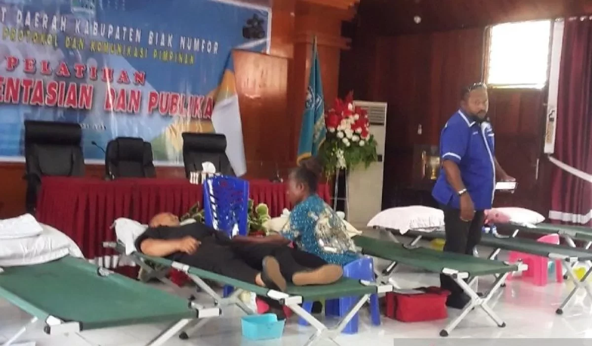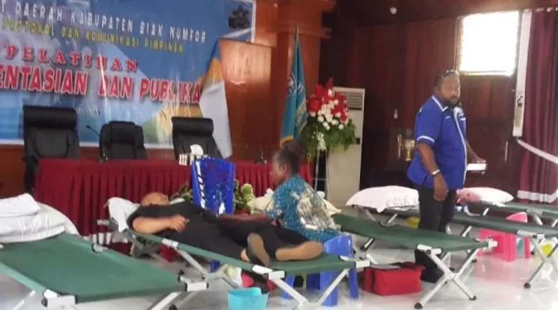 BIAK, POJOKINDO.com – Dewan pengurus daerah Komite Nasional Pemuda Indonesia (KNPI) dan Palang Merah Indonesia (PMI) mengajak generasi anak muda di Kabupaten Biak Numfor melakukan aksi sukarela donor darah untuk membantu pasien yang membutuhkan darah.