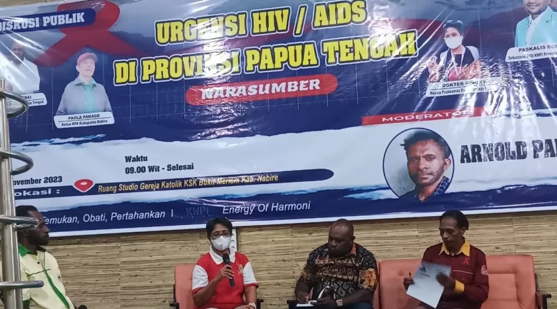 Diskusi publik ini mengambil thema ” Urgensi HIV-AIDS di Provinsi Papua Tengah ” menghadirkan narasumber dari Komisi Penanggulangan AIDS (KPA) Provinsi Papua Tengah, KPA Kabupaten Nabire dan Kepala Puskesmas Bumi Wonorejo yang juga merupakan Pimpinan Klinik Santo Rafael Nabire,  Dokter Pingky Pancawardhani.