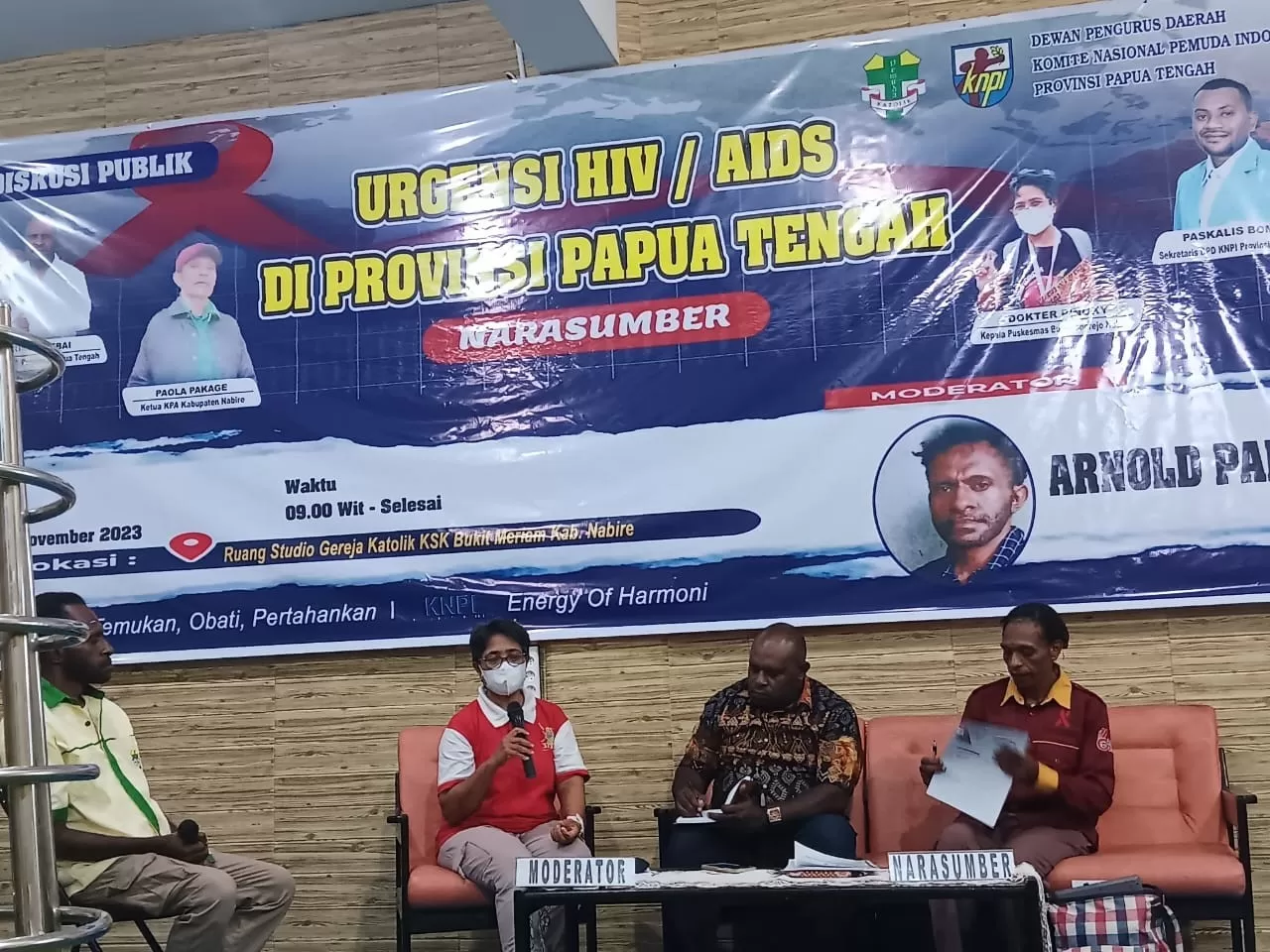 NABIRE, POJOKINDO.com – Menyikapi peningkatan jumlah kasus HIV-AIDS di Provinsi Papua Tengah yang berada pada urutan pertama di Tanah Papua, maka Pemuda Katolik dan Komite Nasional Pemuda Indonesia (KNPI) berkolaborasi menyelenggarakan diskusi publik.