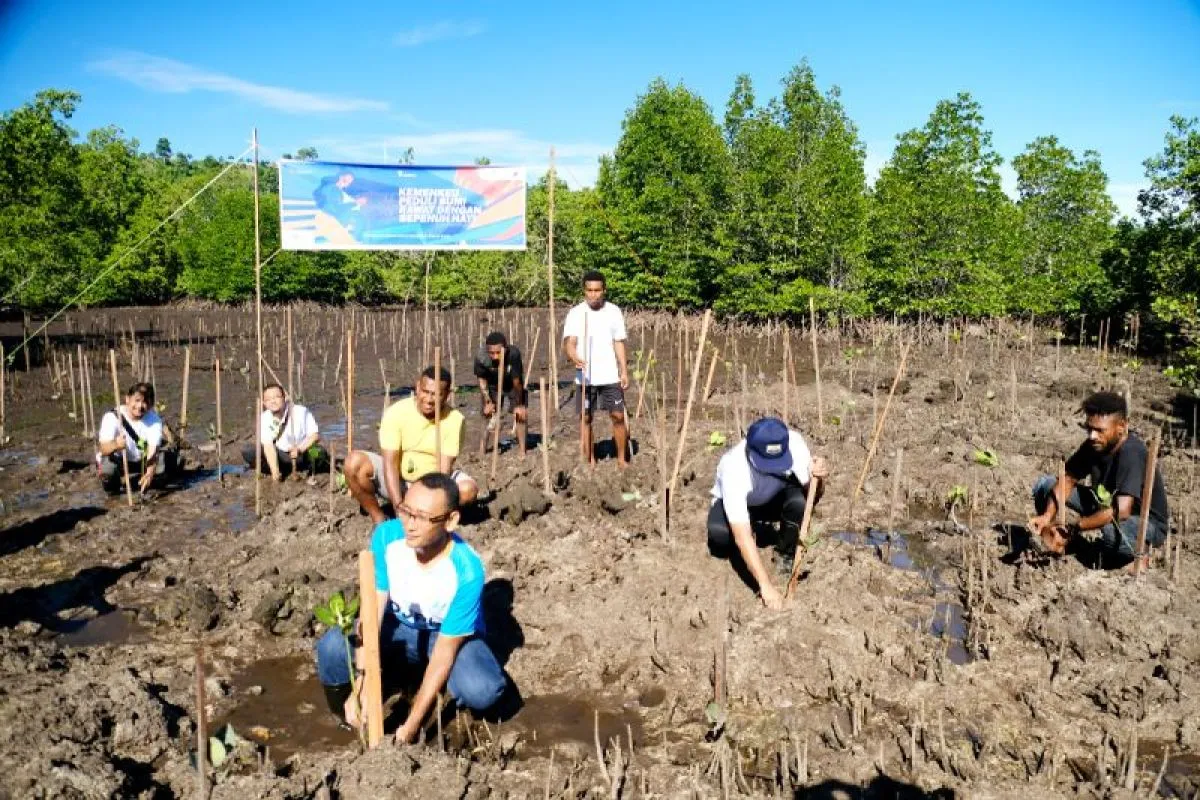 Penanaman 500 bibit mangrove di Sowi Pantai Manokwari pada 21 Oktober 2023 dihadiri oleh Kepala BPDAS Remu Ransiki Masir, perwakilan pegawai Kementerian Keuangan Satu Manokwari yaitu dari Kantor Wilayah DJPb Papua Barat, Kantor Pelayanan Perbendaharaan Negara Manokwari, Kantor Pelayanan Pajak Pratama Manokwari, Kantor Pengawasan dan Pelayanan Bea dan Cukai Manokwari dan pegawai Gedung Keuangan Negara Manokwari. (Khoirul Anam)