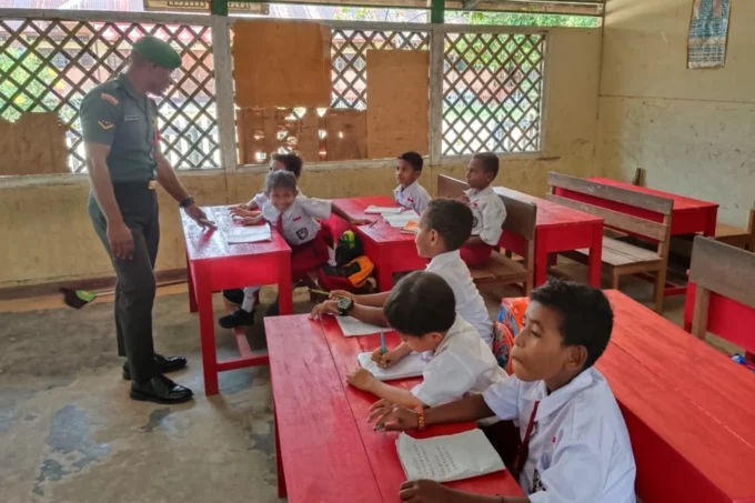 MAPPI, POJOKINDO.com – Dalam rangka ikut serta mencerdaskan anak-anak di pedalaman khususnya yang ada di Bade, Distrik Edera, Kabupaten Mappi, Babinsa Koramil 1707-11/Bade Serda Chaleb Suruan dan Serda Soegiman Ndiken ikut mengajar di SD Inpres 01 Bade, Mappi, Rabu (15/11/2023).