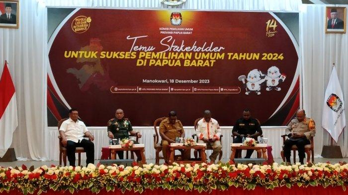 MANOKWARI, POJOKINDO.com – Komisi Pemilihan Umum (KPU) Papua Barat menggelar temu stakeholder di Hotel Aston Niu Manokwari, Senin (18/12/2023) sore. Temu stakeholder itu dihadiri Penjabat Gubernur Papua Barat, Ali Baham Temongmere, Ketua KPU Papua Barat, Paskalis Semunya, Pangdam XVIII Kasuari, Mayjen TNI Ilyas Alamsyah.