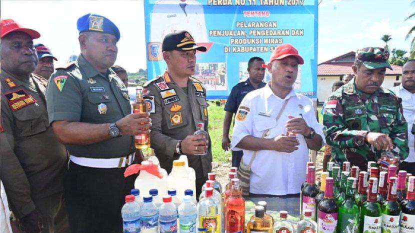 Ciptakan Suasana Natal yang Damai, Pemkab Sarmi bersama TNI/Polri Musnahkan Berbagai Jenis Miras