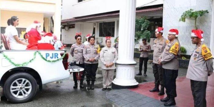 Tim yang menggunakan jubah Santa Claus Polda Papua akan menyambangi berbagai lokasi untuk menyerahkan bingkisan Natal sebagai bentuk kebahagiaan dan kasih sayang terhadap sesama.