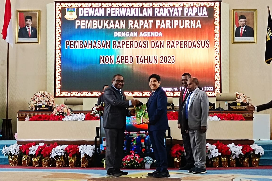 JAYAPURA, POJOKINDO – Agenda sidang penetapan Raperdasi dan Raperdasus Non APBD tahun 2023 dan Program Pembentukan Peraturan Daerah Provinsi Papua tahun 2024 akhirnya disahkan.