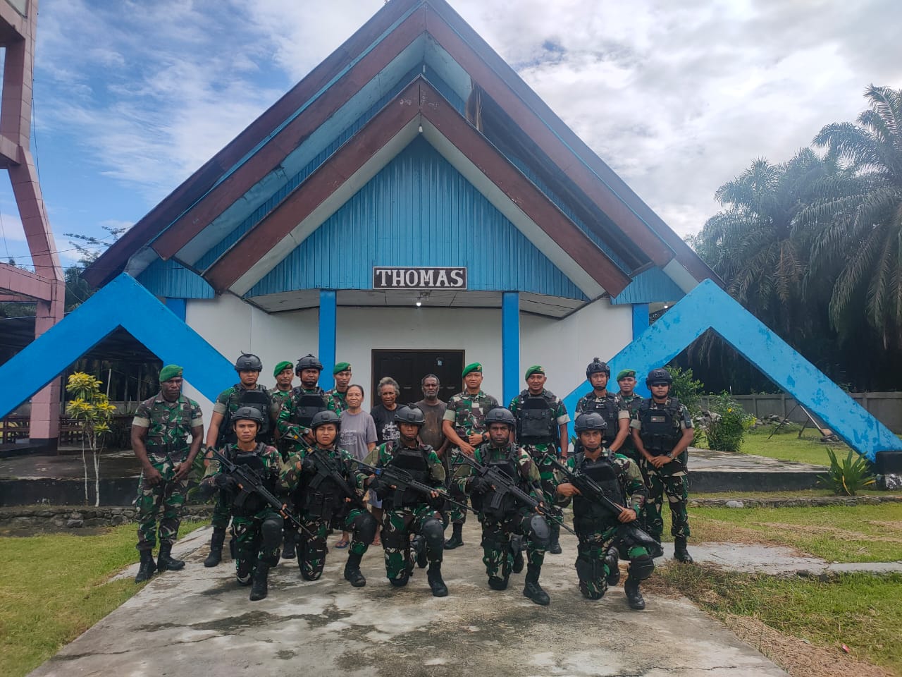 Ciptakan Rasa Aman Jelang Natal, Yonif 761/KA Patroli ke Gereja