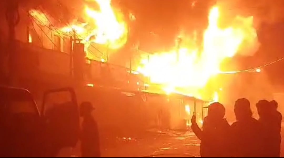 Sekelompok massa yang menunggu kedatangan iringan mobil jenazah Lukas Enembe dari Sentani, membakar belasan rumah pertokoan (ruko) di persimpangan Jalan Perumnas Waena, Distrik Heram.