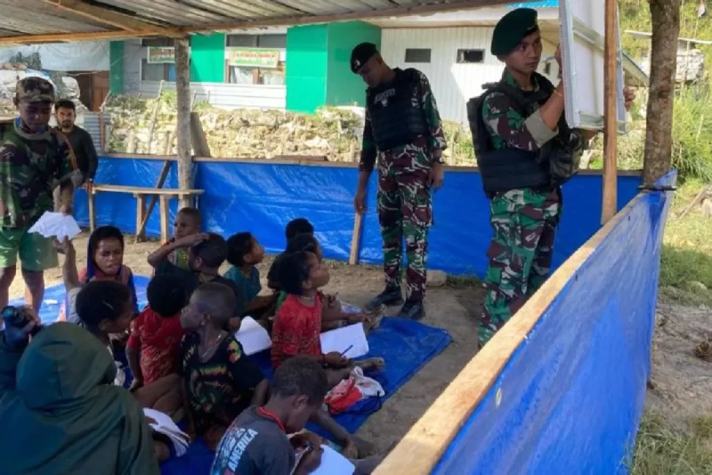 “Fasilitas di sekolah darurat sangat terbatas karena hanya ada papan tulis, buku dan alat tulis lainnya dan pengajarnya dari prajurit Satgas TNI 300/Bjw yang berasal dari Kodam III/ Siliwangi,” kata Letkol Inf Ritonga.
