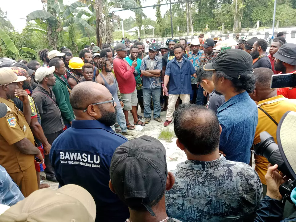 Kepala Distrik Kuala Kencana Yemi Gobai mengatakan, menanggapi aksi tersebut pihaknya bersama Kapolsek dan Danramil Kuala Kencana melakukan pertemuan antara warga dan PPS Karya Kencana untuk membicarakan dimana akan ditempatkan TPS.