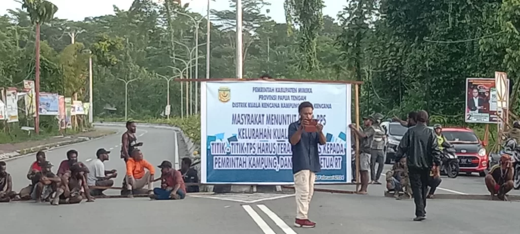 Warga Blokade Jalan di Mimika Protes Pemindahan Lokasi TPS