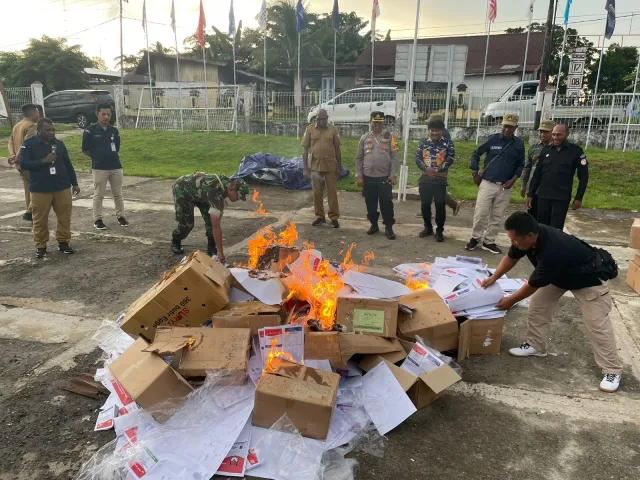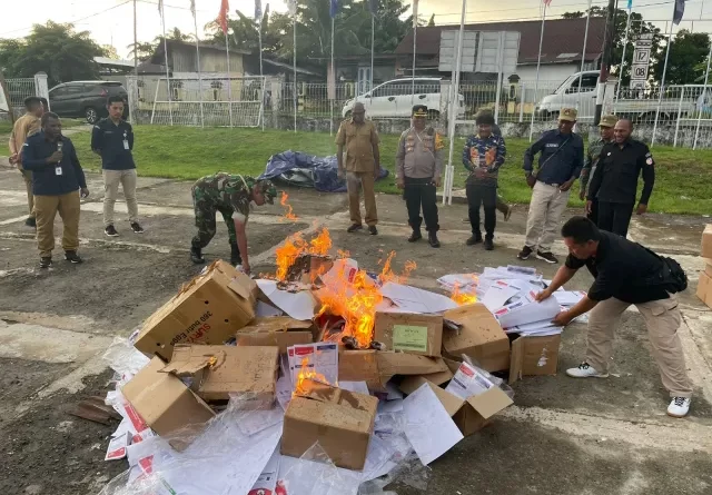 5000 Suarat Suara Siluman Provinsi di Mappi Dimusnahkan