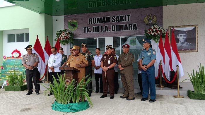 Pangdam XVIII/Kasuari, Mayjen TNI Ilyas Alamsyah beserta tamu undangan saat menghadiri peresmian di Halaman RS J A Dimara, Brawijaya, Kabupaten Manokwari, Papua Barat, Senin (19/2/2024).