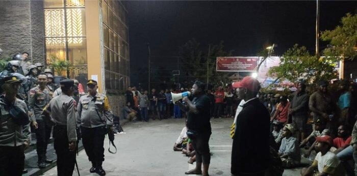 Hingga saat ini pukul 22.48 WIT massa masih lakukan orasi. (ka)