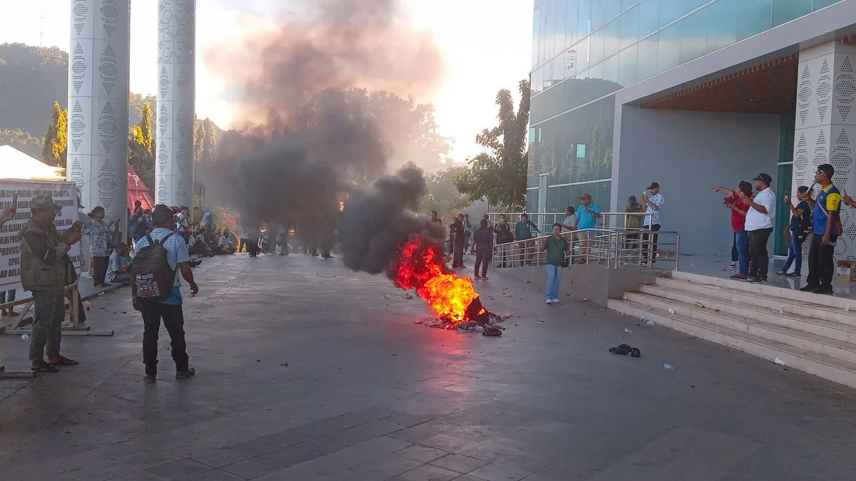 BREAKING NEWS: Demo Ratusan Tenaga Honores di Halaman Kantor Gubernur Papua Diwarnai Aksi Bakar Ban