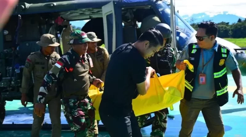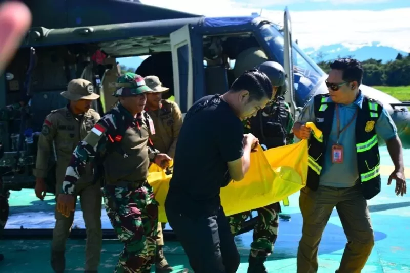 Kepala Operasi Damai Cartenz Kombes Pol. Dr. Faizal Ramadhani mengatakan proses evakuasi jenazah dari Pogapa, Homeyo, Intan Jaya, pada Sabtu (4/5/2024) dilakukan oleh personel gabungan TNI-Polri dengan menggunakan sarana Heli Bell Penerbad.
