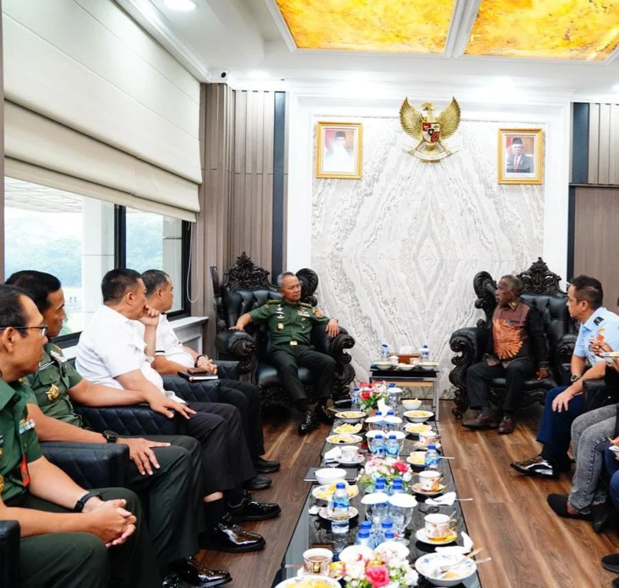 JAKARTA, POJOKINDO.com – Kepala Staf Umum (Kasum) TNI, Letjen TNI Richard Tampubolon, mewakili Panglima TNI Jenderal TNI Agus Subiyanto, menerima kunjungan silaturahmi dari mantan Pj Bupati Nduga, Edison Gwijangge, di Markas Besar TNI, Cilangkap, Jakarta Timur, Selasa (24/9/2024).