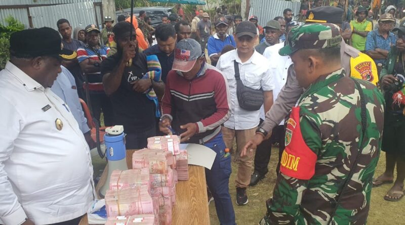 WAMENA, POJOKINDO.com – Penjabat (Pj) Bipati Nduga, Elai Giban memberikan bantuan duka kepada keluarga korban meninggal dari Suku Nduga di Kampung Elekma, Distrik Napua, Kabupaten Jayawijaya, Papua Pegunungan, Sabtu kemarin.