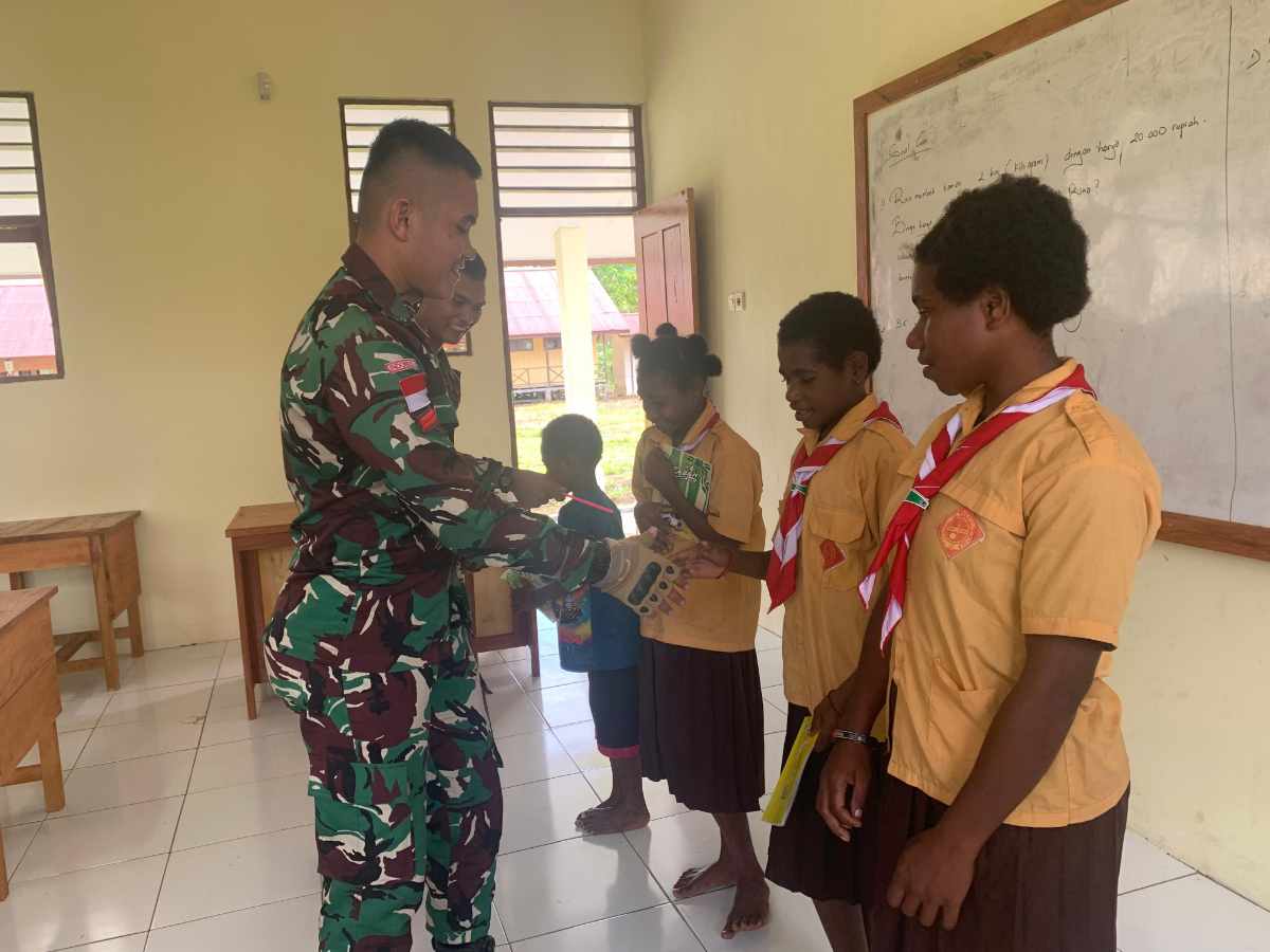 KEEROM, POJOKINDO.com – Dalam upaya meningkatkan budaya literasi dan mempersiapkan generasi yang lebih berkualitas, Satgas Yonif 512/QY turut serta membantu proses belajar mengajar di SD Inpres Towe Hitam.