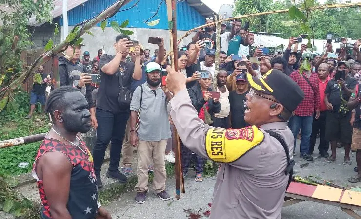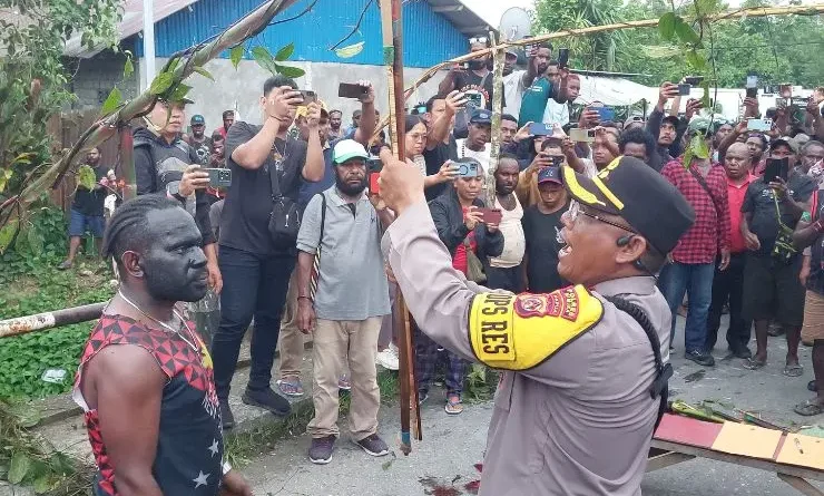 Prosesi adat patah panah dilakukan langsung oleh Kapolres Mimika AKBP I Komang Budiartha dan disaksikan kedua belah pihak yang bertikai, Sabtu (28/12/2024), di Jalan C. Heatubun.
