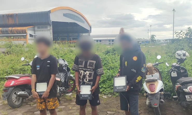 POJOKINDO.COM -Mimika- Tiga pemuda tertangkap hendak mencuri lampu taman di depan Bandara Mozes Kilangin di Mimika, Papua Tengah pada Senin, 3 Februari 2025 sekitar pukuk 16.30 WIT.