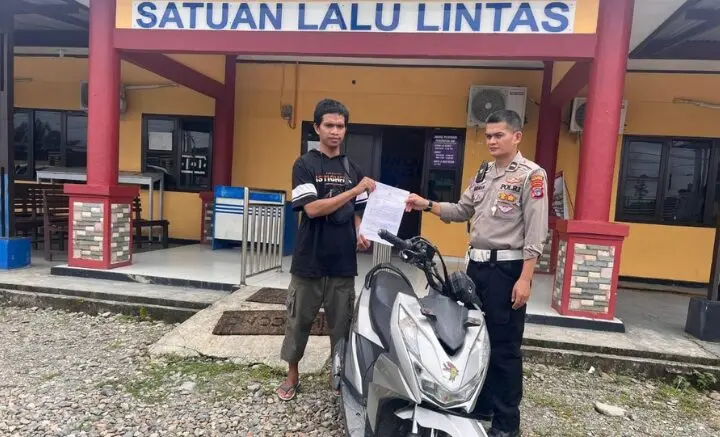POJOKINDO.COM -Mimika- Satlantas Polres Mimika menyerahkan motor hasil curian kepada pemilik asli kendaraan di kantor Satlantas Polres Mimika, Jalan WR Soepratman, Selasa (4/3/2025).