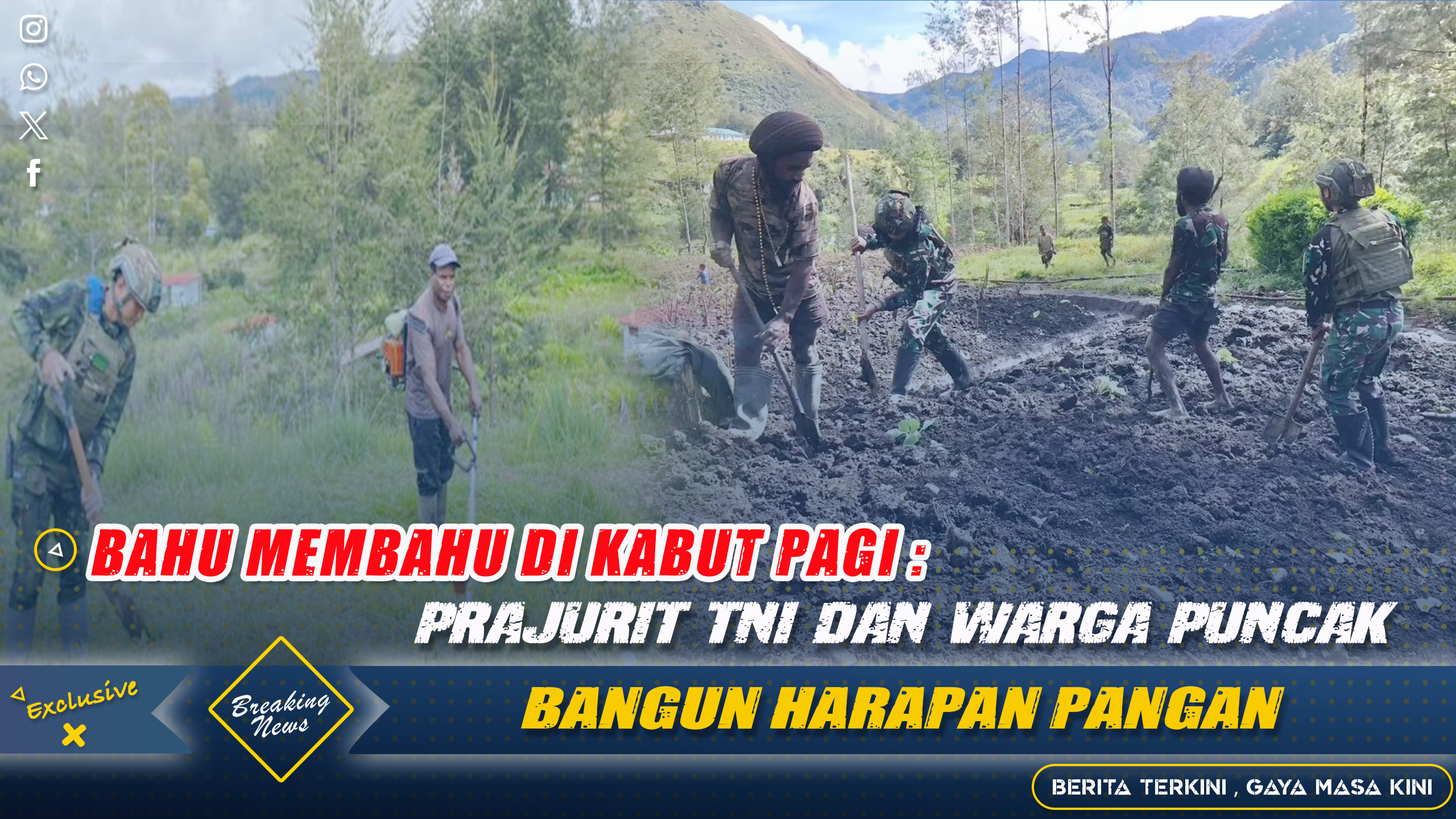 Prajurit TNI dan warga bergotong-royong membuka lahan baru untuk perkebunan. Dengan cangkul di tangan dan parang membelah semak, mereka bekerja dalam harmoni. Sesekali terdengar tawa ringan, seolah kehangatan kemanusiaan menembus dinginnya pagi di Kampung Nipuralome, Distrik Omukia, Kabupaten Puncak.