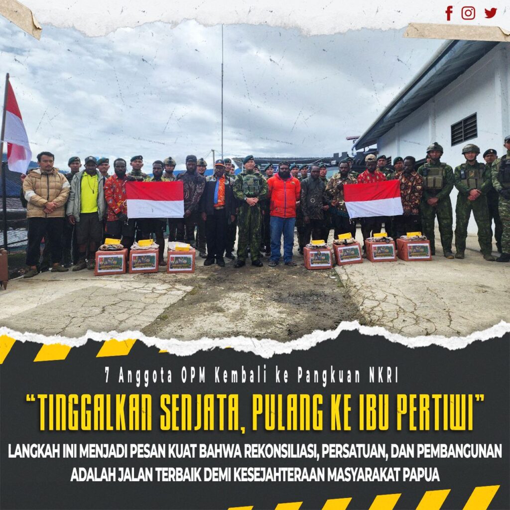 Keputusan tujuh anggota OPM untuk menyerahkan diri dan kembali ke NKRI menjadi simbol pintu rekonsiliasi yang terbuka. Mereka menegaskan bahwa kekerasan hanya membawa penderitaan, sementara perdamaian membuka jalan menuju masa depan yang lebih baik. Perwakilan eks OPM, Wakola Tabuni, menyampaikan bahwa keputusan tersebut diambil atas kesadaran penuh: “Kekerasan hanya membawa penderitaan.”