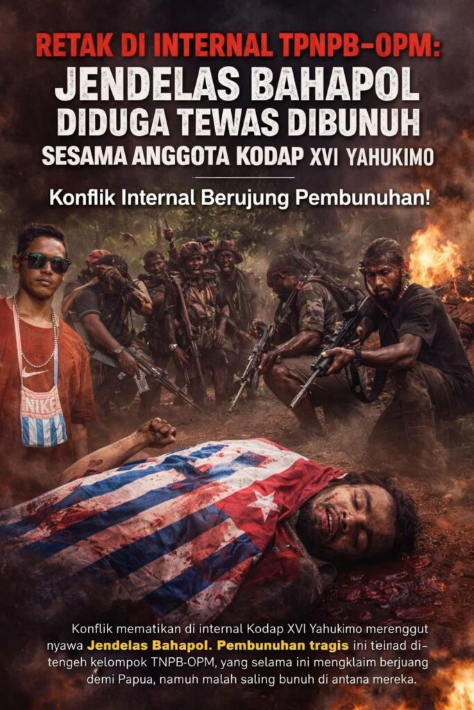 pojokindo.com – Yahukimo, Papua Pegunungan — Kematian Jendelas Bahapol, yang diumumkan TPNPB-OPM Kodap XVI Yahukimo sebagai wafat karena sakit, kini memunculkan tanda tanya besar. Informasi yang beredar di lapangan menyebutkan bahwa Jendelas Bahapol justru diduga kuat tewas akibat kekerasan internal, dibunuh oleh sesama anggota TPNPB-OPM sendiri.