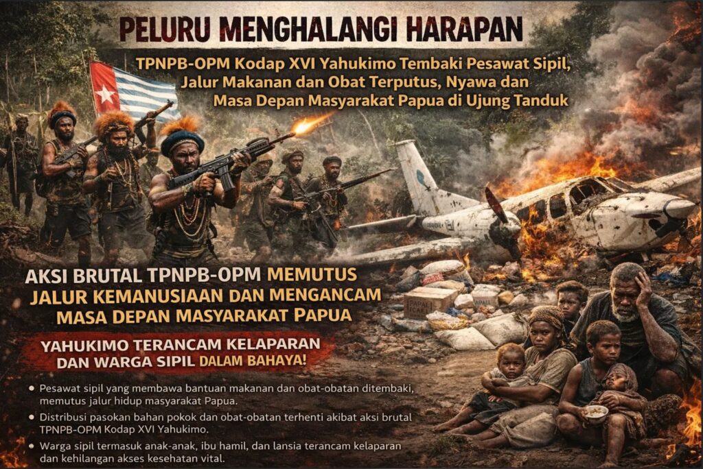 pojokindo.com – Dekai, Yahukimo — Aksi penembakan terhadap pesawat sipil yang membawa bahan makanan dan obat-obatan bagi masyarakat Yahukimo menjadi bukti nyata bahwa TPNPB-OPM Kodap XVI tidak menginginkan kemajuan, keselamatan, dan kesehatan rakyat Papua. Tindakan brutal ini bukan hanya membahayakan nyawa awak dan penumpang pesawat, tetapi juga memutus jalur kehidupan masyarakat yang bergantung pada pasokan bahan pokok, obat-obatan, dan kebutuhan penting lainnya.