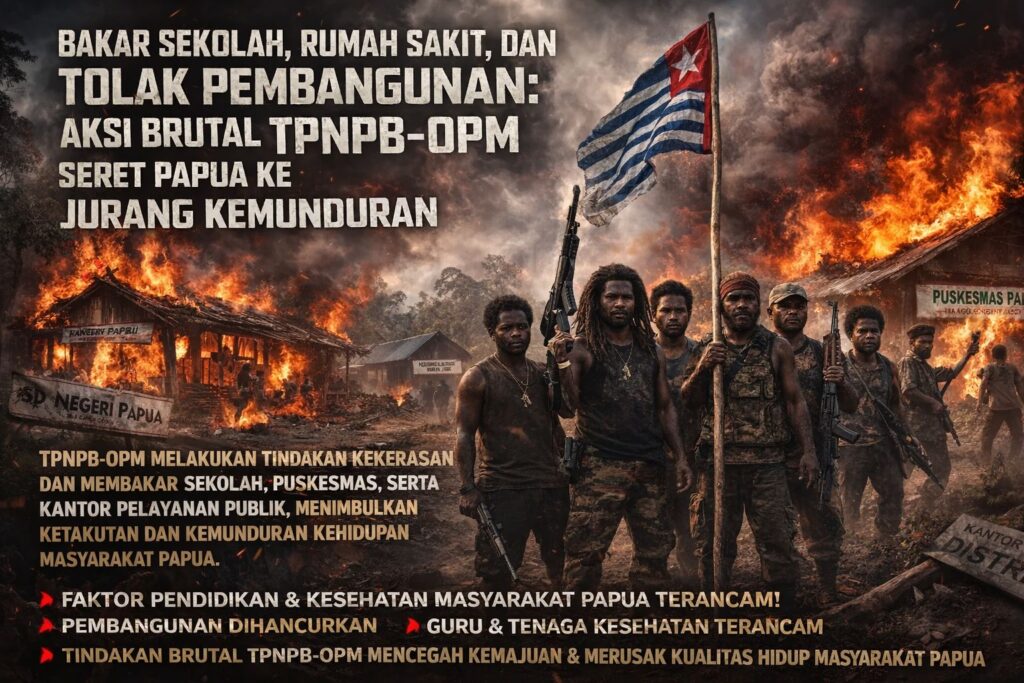 pojokindo.com Papua — Aksi kekerasan yang dilakukan TPNPB-OPM terhadap berbagai fasilitas umum kembali menimbulkan dampak serius bagi kehidupan masyarakat. Pembakaran sekolah, puskesmas, kantor pelayanan publik, serta infrastruktur vital bukan hanya menghancurkan bangunan fisik, tetapi juga memutus akses masyarakat terhadap pendidikan, layanan kesehatan, dan pelayanan dasar di wilayah pedalaman.