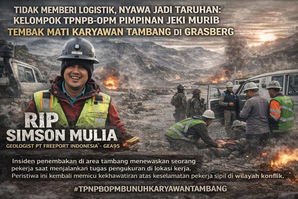 pojokindo.com– Tembagapura, Papua Tengah — Insiden penembakan terjadi di area tambang terbuka Grasberg Mine, Distrik Tembagapura, pada Rabu (11/3/2026). Peristiwa tersebut mengakibatkan seorang karyawan perusahaan tambang berinisial SM (49) meninggal dunia setelah mengalami luka tembak di bagian kepala saat sedang menjalankan tugas.
