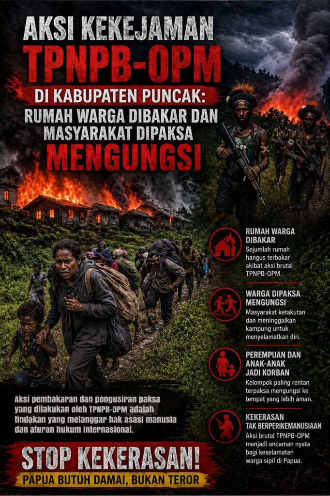 Pojokindo.com – Situasi mencekam melanda Ondugura, Distrik Omukia, Kabupaten Puncak, setelah muncul laporan pembakaran rumah warga sipil yang dilakukan oleh TPNPB-OPM pada Kamis, 23 April 2026. Dalam insiden tersebut, sejumlah rumah dilaporkan hangus terbakar dan memicu kepanikan di tengah masyarakat yang tidak siap menghadapi situasi kekerasan yang terjadi secara tiba-tiba.