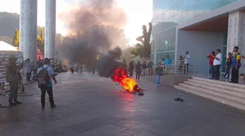 JAYAPURA, POJOKINDO.com – Solidaritas ASN dan Masyarakat Papua atau SAMP kembali menggeruduk Kantor Gubernur Papua di Jalan Soa Siu Dok II Kota Jayapura, Selasa (23/4/2024). Mereka mendesak