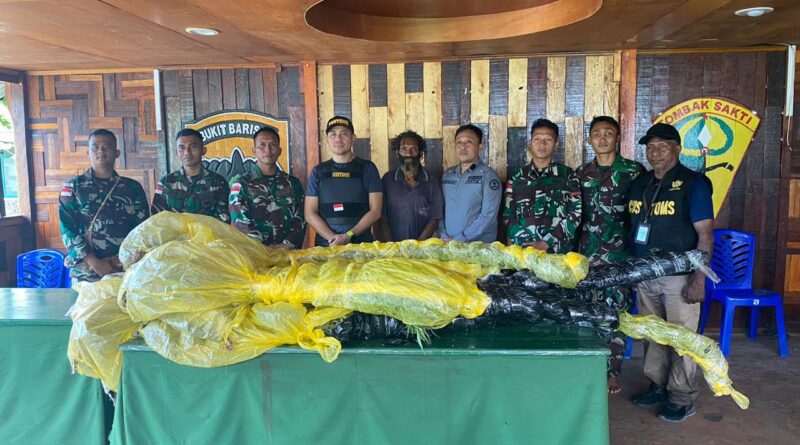 Melintasi medan yang sulit, Lahan ganja seluas 600 Meter dan 50,25 Kg ganja siap panen, berhasil di temukan Personel Satgas Yonif 122/TS di batas Indonesia-Nugini